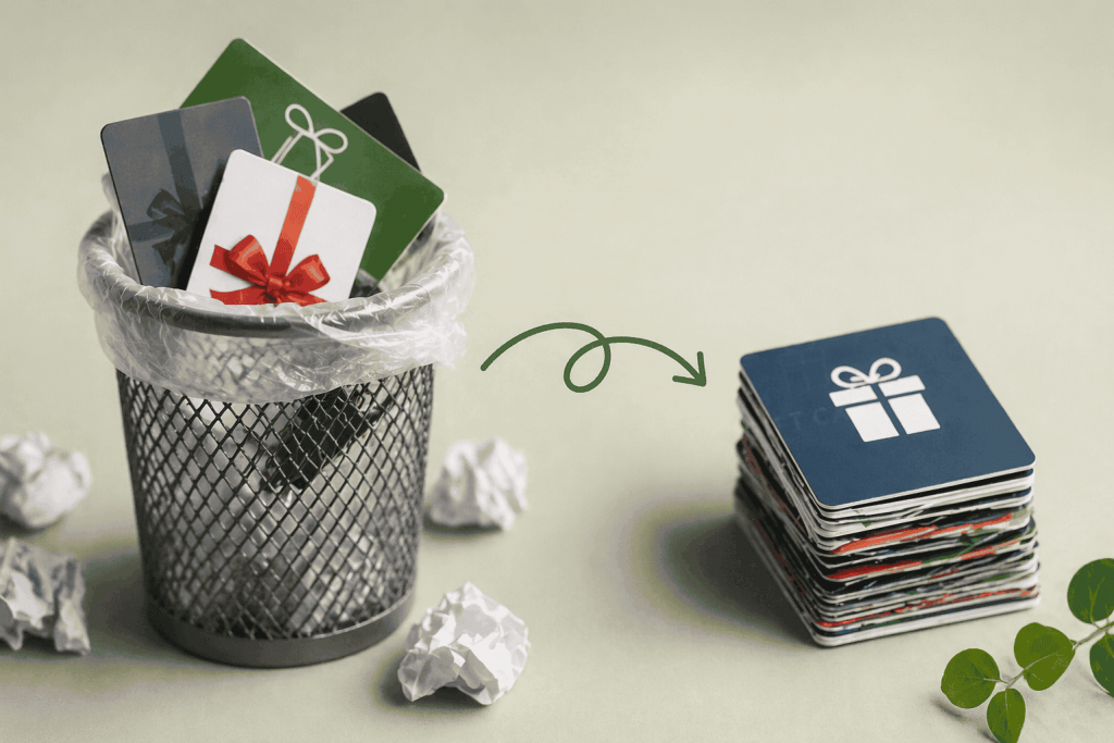 How? Americans buy about 10 billion gift cards a year. And a huge percentage of them never get used. Billions of dollars of unused balances sit in drawers, wallets, and forgotten inboxes — cards that got made, printed, shipped, and handed over, only to do nothing.